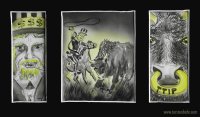 Airbrush and ink illustrations, politcal incorrect. Not for sale!